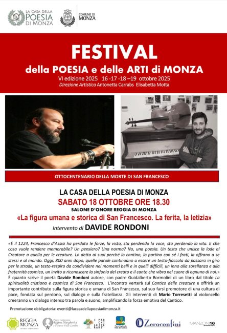FESTIVAL DELLA POESIA E DELLE ARTI DELLA CASA DELLA POESIA DI MONZA edizione 2024 La poesia e la musica della scienza, verso il mistero, Direzione artistica Antonetta Carrabs e Elisabetta Motta Il 25 ottobre il […]